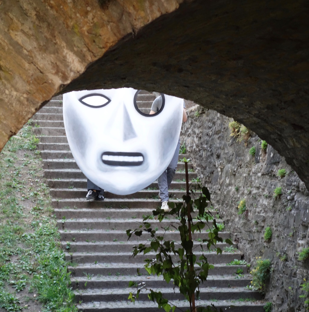 Eine Ecke wird zum Eingang, eine Wand zur Tür, eine Maske aus einem Bild von Felix Nussbaum wird lebendig und ein Baum geht auf Reisen… Neun Performer_innen entwickelten ungewöhnliche und überraschende Umgangsformen für architektonische Situationen rund um das Felix-Nussbaum-Haus im Rahmen des Jubiläums „20 Jahre – 20 Tage Freunde zu Gast im Felix-Nussbaum-Haus“.